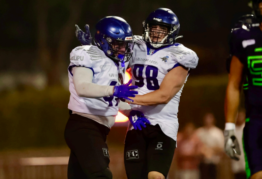Denzel Strong (#3) para empatar el partido, aunque también fallaron su intento de punto extra. Posteriormente, un mal centro de Gallos Negros provocó un safety a