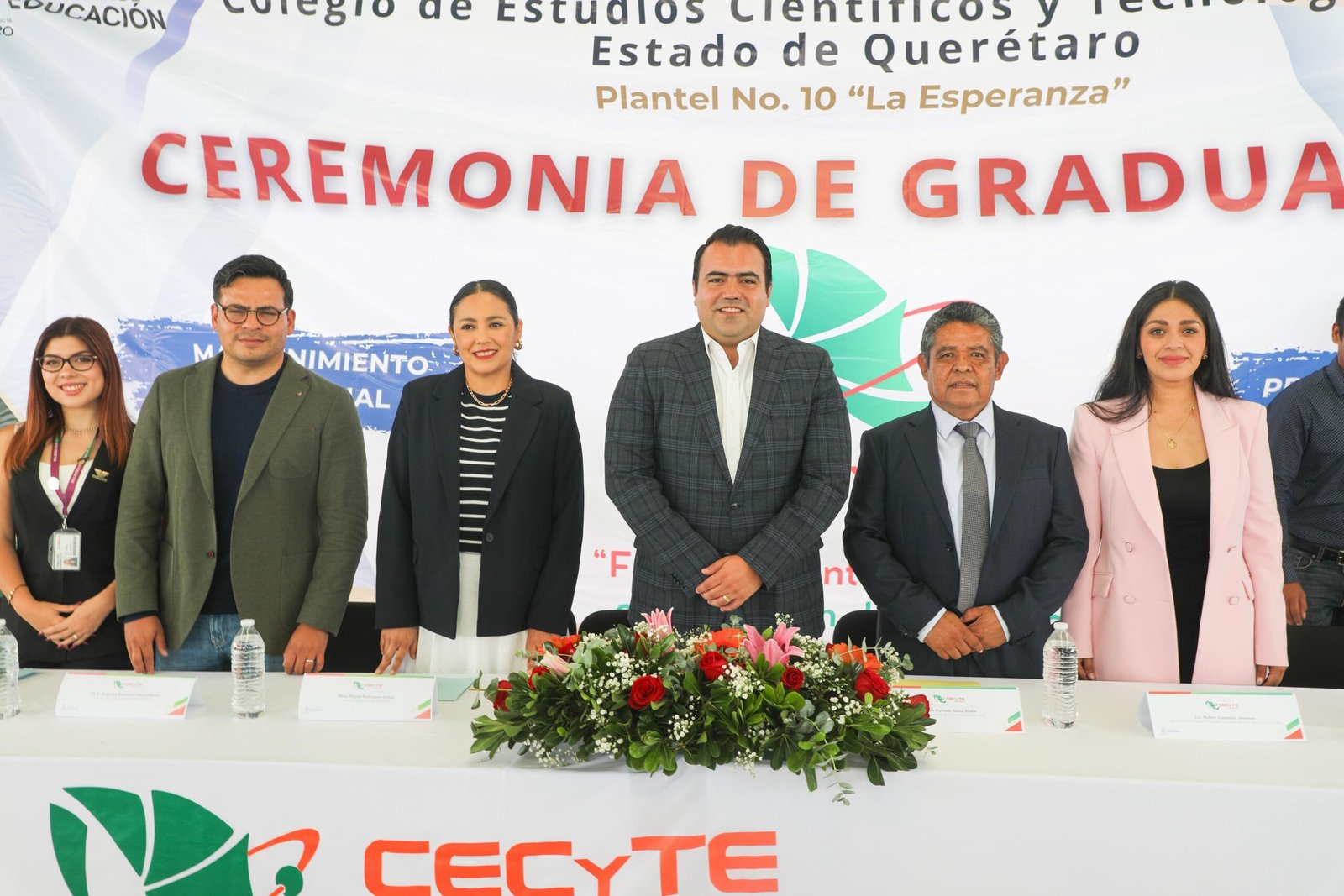 El Presidente Municipal, Gaspar Trueba Moncada, asistió a la ceremonia de clausura de cursos de la Generación 2022-2025 del Colegio de Estudios Científicos y Tecnológicos del Estado de Querétaro (CECyTEQ), Plantel 10 La Esperanza, de donde egresaron 128 alumnos.