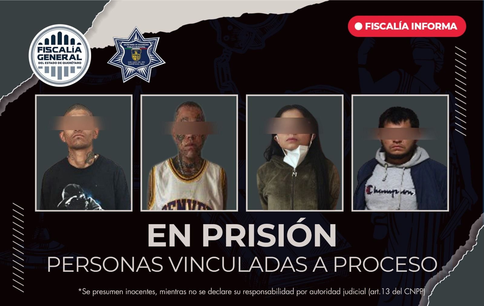 La Fiscalía de Querétaro obtuvo la vinculación a proceso de tres hombres y una mujer, por su probable intervención en el delito de robo calificado, cometido en San Juan del Río.