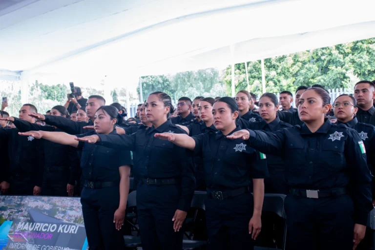 “Aquí seguiremos formando policías profesionales, aquí seguiremos facilitando un ambiente de tranquilidad, de paz, como lo ha pedido el gobernador del estado, Mauricio Kuri, donde las familias tengan mayores oportunidades. Este esfuerzo se consolida al 100% de los elementos policiales certificados y al haber incorporado a más de 600 nuevos policías equipados y seis centros tácticos en cuatro años”, expresó.