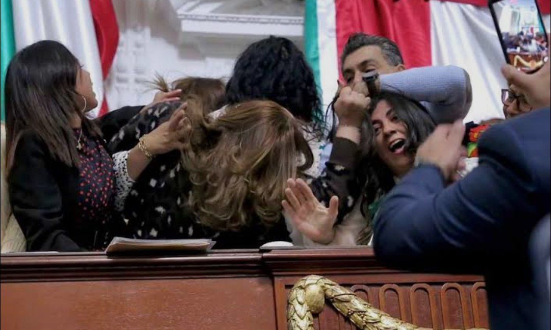 Las imágenes de la cámara mostraron cómo parlamentarios opositores al partido oficialista Morena subieron a la tribuna con carteles para quejarse de la iniciativa pero, poco a poco, el tono del debate fue subiendo y parlamentarias del oficialismo y la oposición comenzaron a gritarse, golpearse y tirarse de los pelos justo detrás del presidente de la cámara que intentaba —sin éxito— imponer la calma haciendo sonar una campana y luego separando a las legisladoras.
