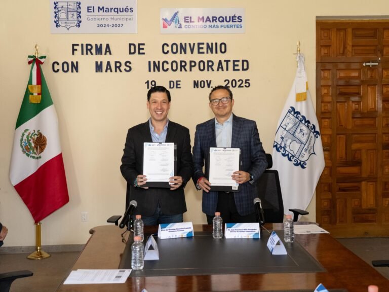 El presidente municipal de El Marqués, Rodrigo Monsalvo Castelán, encabezó la firma de un convenio de colaboración con Mars Incorporated, con el objetivo de reforzar las acciones en materia de bienestar y protección animal que impulsa el municipio.