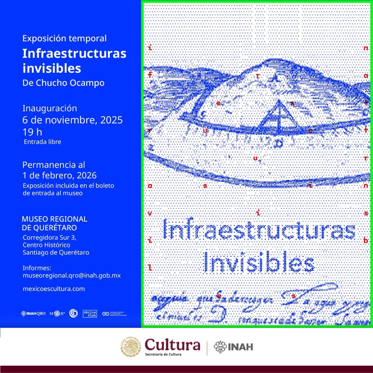 La exposición Infraestructuras Invisibles examina la Acequia Madre de Querétaro, una infraestructura hidráulica de la antigüedad, para explorar cómo desenterrar la memoria y evidencia material de nuestras ciudades. Dividida en cuatro núcleos temáticos, aborda la interrelación entre lo artificial y lo geológico, la humanización de la ciencia a través del trabajo de campo, el diseño de nuevas interfaces inspiradas en la antigüedad, y el valor de las capas de historia que habitan bajo nuestros pies.