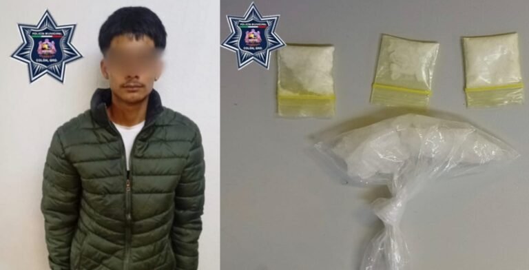 Al momento se le encontró que traía consigo varias bolsas de plástico que en su interior contienen sustancia con características similares a la mentafetamina conocida como “cristal”.