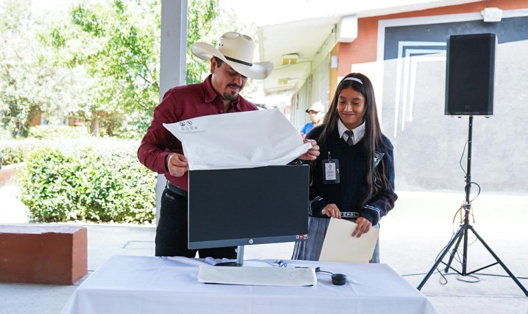 Con el objetivo de fortalecer las condiciones de aprendizaje y reducir la brecha digital en el municipio, el presidente municipal, Beto Nava, encabezó la entrega de equipos de cómputo en la telesecundaria “Ángela Peralta”, ubicada en la comunidad de Epigmenio González.