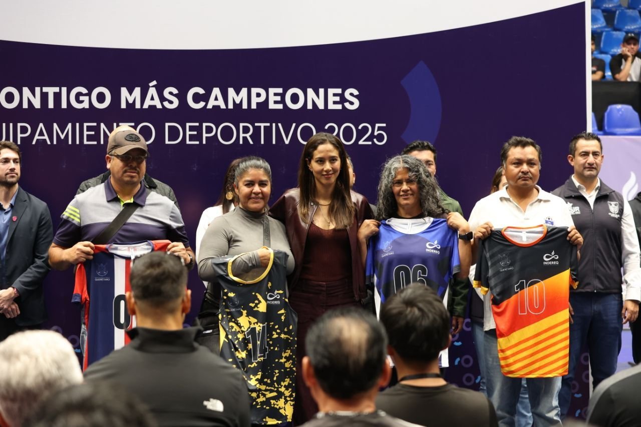La titular del Instituto del Deporte y la Recreación del Estado de Querétaro (INDEREQ), Iridia Salazar Blanco, a través del área de Cultura Física, llevó a cabo el programa “Contigo Más Campeones: Equipamiento Deportivo 2025” que consiste en la entrega de uniformes deportivos, el cual benefició a más de 12 mil miembros de organizaciones y ligas deportivas de los 18 municipios de la entidad queretana.
