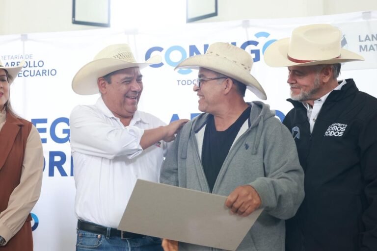 “El apoyo que hoy se recibe lo vamos a saber aprovechar, lo vamos a trabajar. Como ya dijo nuestro presidente de la ganadera, Romualdo, si en el rancho no se trabaja, en la ciudad no van a comer. Cada que un citadino se come un bistec es porque ustedes se pararon temprano a trabajar, a engordar ese becerro, a engordar ese cerdito, pero si ustedes o nosotros por el campo no trabajamos, en la ciudad desgraciadamente no van a comer”, concluyó.