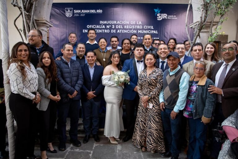 Durante el evento, se llevó a cabo el matrimonio civil entre Mario Yahir Díaz Morales y Fernanda Alejandra Vázquez López, el primero que se realiza en la Oficialía del Registro Civil número 3. La lectura del acta de matrimonio estuvo a cargo del presidente municipal de San Juan del Río, Roberto Cabrera Valencia, quien felicitó a la pareja por sus nupcias.