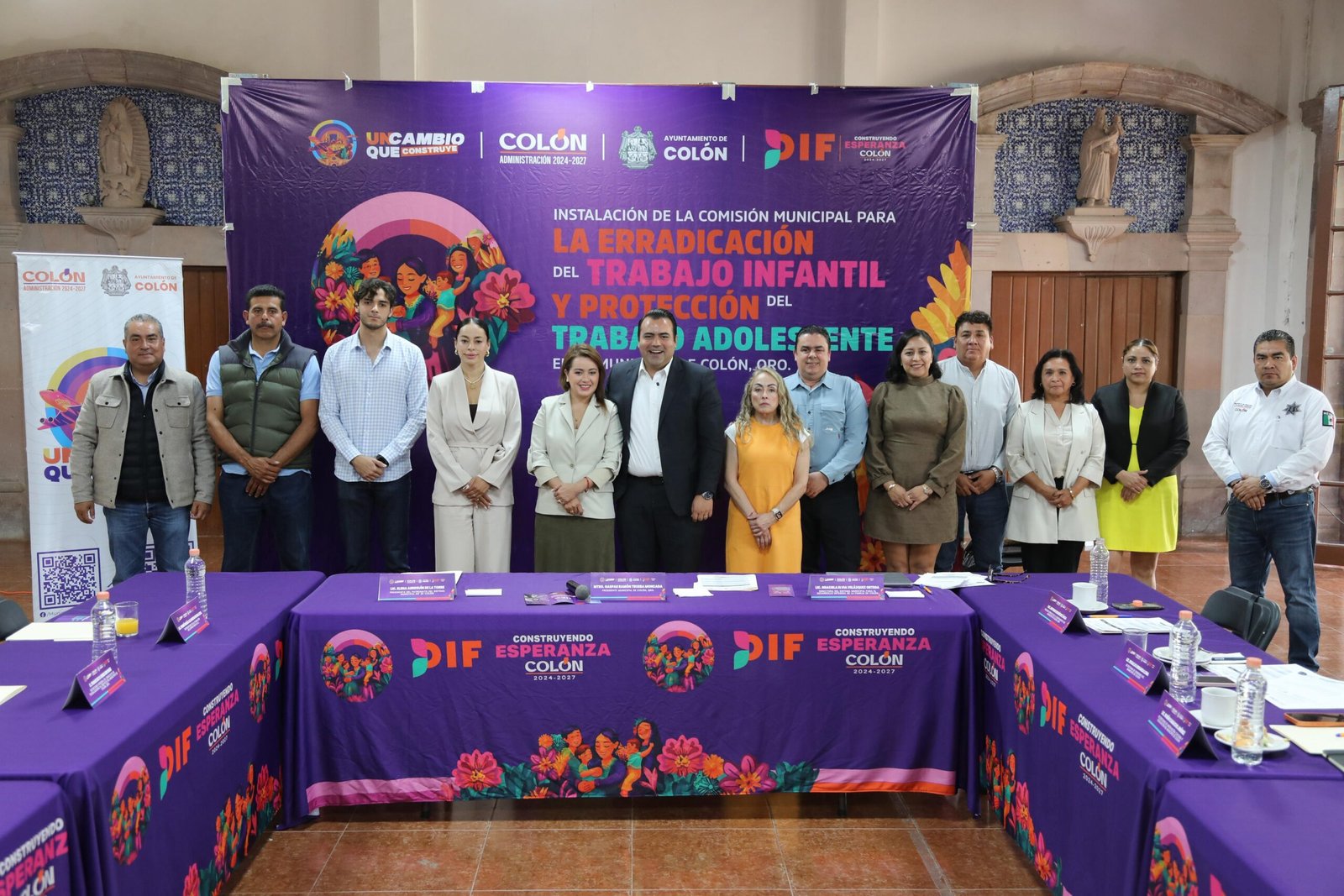 La Presidenta del Sistema Municipal DIF, Elena Arreguín de la Torre, tomó parte en el evento donde el Alcalde Gaspar Trueba Moncada instaló la Comisión Municipal para la Erradicación del Trabajo Infantil y Protección del Trabajo Adolescente de Colón.