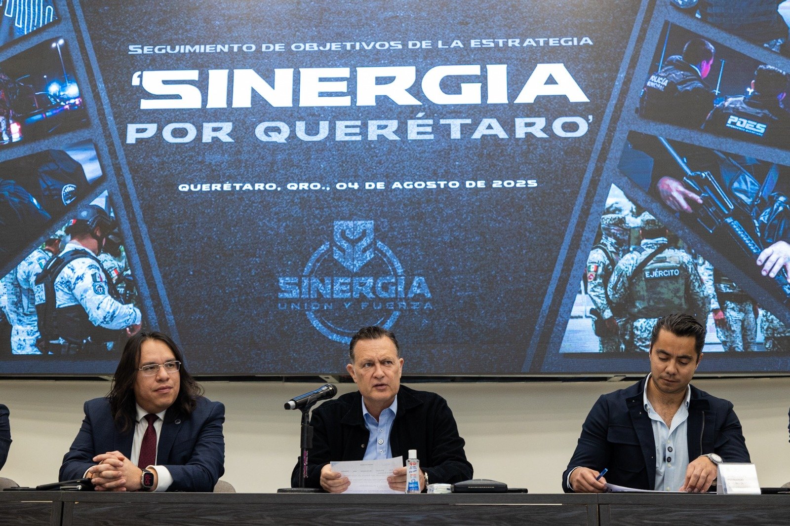 El titular del Poder Ejecutivo estatal, Mauricio Kuri González, asistió a la reunión de seguimiento de objetivos de la estrategia “Sinergia por Querétaro”, la cual tiene como propósito fortalecer la coordinación y colaboración entre las distintas corporaciones de seguridad de los tres órdenes de gobierno, así como alinear las agendas estratégicas y de mitigación de riesgos.