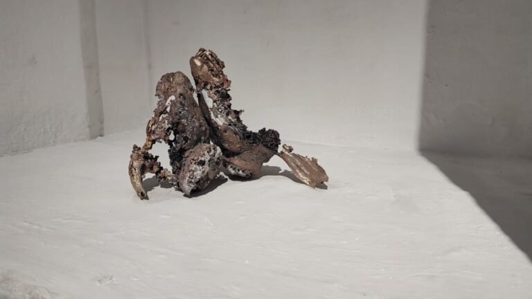 Las bolas hechas de plástico doméstico reciclado y prensado en pieles de animales domésticos, los latones y las fundiciones grises a carne perdida de cráneos de cabras y vacas son objetos que enfrentan al público a lo orgánico, cuya vida ha sido eliminada.