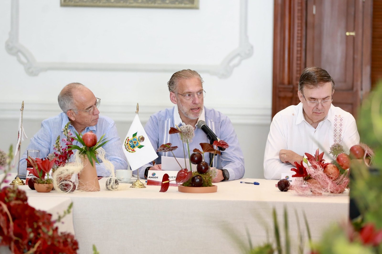 El presidente de la Asociación Mexicana de Secretarios de Desarrollo Económico (AMSDE) y titular de la Secretaría de Desarrollo Sustentable (SEDESU), Marco Antonio Del Prete Tercero, encabezó un encuentro entre los integrantes de la asociación y el secretario de Economía, Marcelo Ebrard Casaubón, evento que se realizó en Mérida, Yucatán.