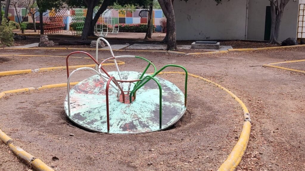 Además de los daños visibles en las estructuras del parque, la situación de higiene también es crítica. El área está invadida por basura que no ha sido retirada, acumulándose en diferentes puntos del parque y en las cercanías. Esto no solo afecta la estética del lugar, sino que también representa un riesgo para la salud pública, ya que la acumulación de desechos puede atraer a roedores y otros animales.