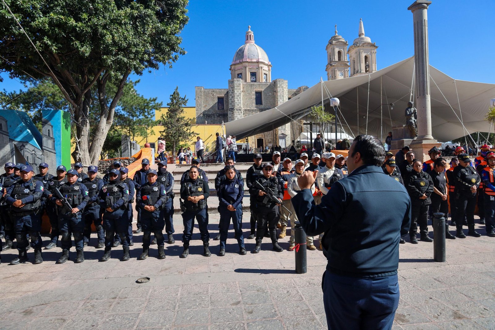 Acompañado del Rector de la Basílica de Soriano, Pbro. Víctor Manuel Avendaño Jiménez, el Alcalde encabezó el acto en el que realizó una inspección y revisión del personal y equipo automotor, generalmente con el objetivo de verificar su estado, preparación o cumplimiento de normas.