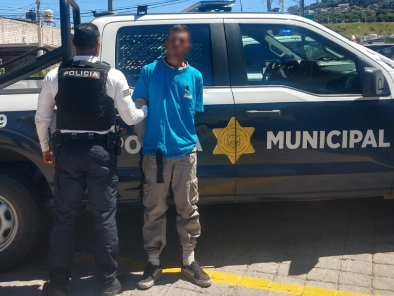 Lo anterior, luego de que desde el Centro de Atención a Emergencias 9-1-1, el personal policial fue canalizado a la calle Santiago Tlatelolco, colonia Villas de Santiago, donde visualizaron a un masculino bajo los influjos del alcohol, amagando con un machete a la cajera de una tienda de conveniencia solicitándole dinero; por ello y luego de una pronta actuación, el sujeto fue asegurado.