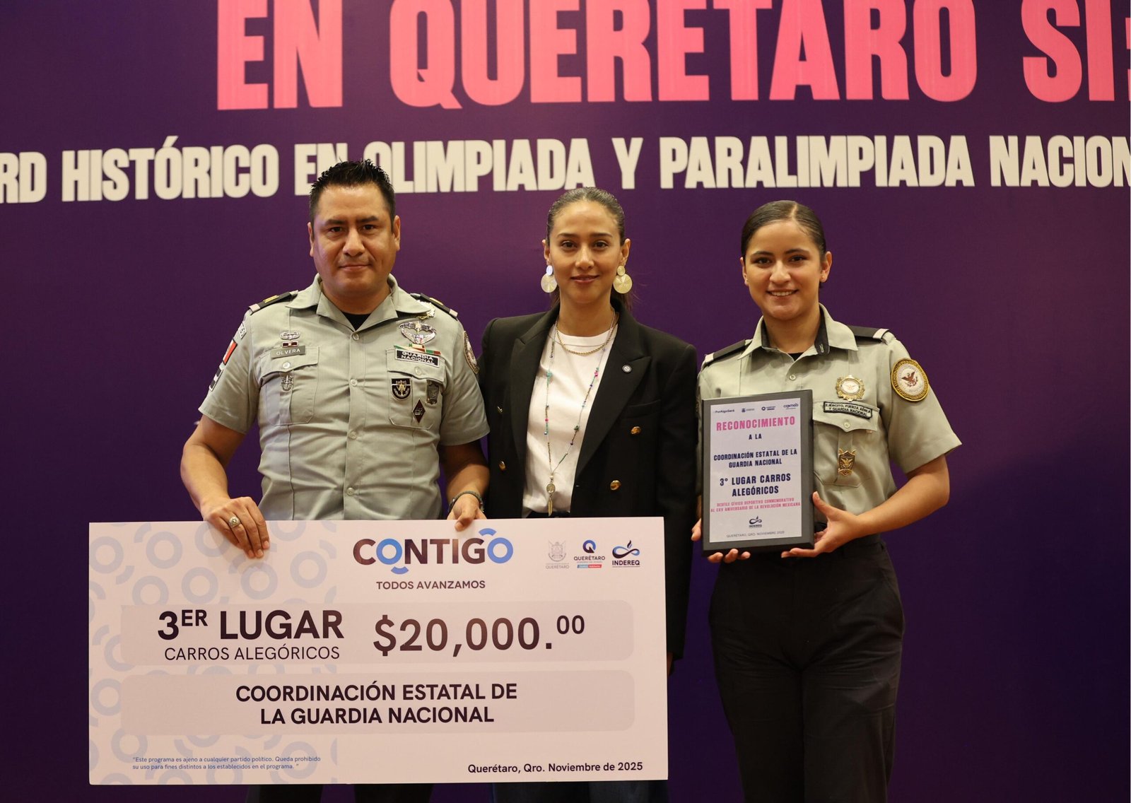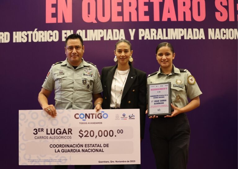 Iridia Salazar Blanco, directora general del Instituto del Deporte y la Recreación del Estado de Querétaro (INDEREQ), premió a los ganadores de los contingentes que participaron en el Desfile Conmemorativo del CXV Aniversario de la Revolución Mexicana, realizado el pasado 17 de noviembre.