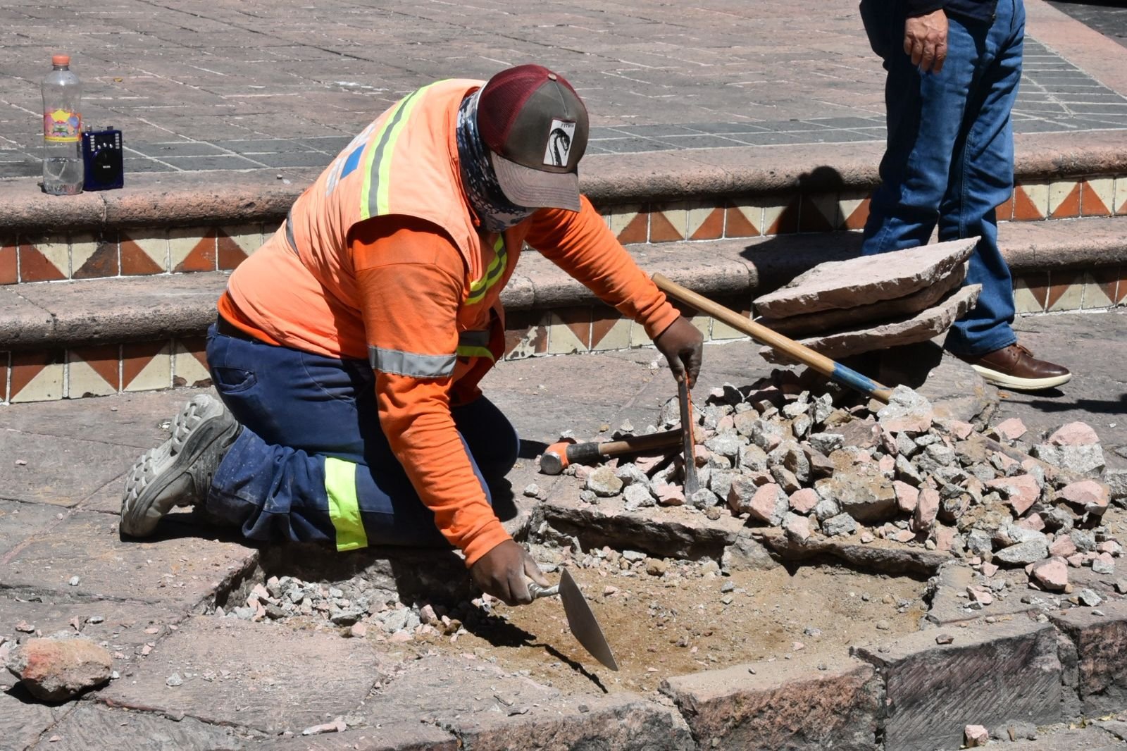 Marco Álvarez explicó que, a través del trabajo que realizan las cuadrillas, se trabaja para contar con un Centro Histórico donde se privilegia la movilidad del peatón; por ello, se llevan a cabo reparaciones de banquetas, guarniciones y registros ubicados en el primer cuadro de la ciudad, así como el cambio y colocación de luminarias, con el objetivo de contar con entornos seguros, tal como lo establece el Plan Orden.