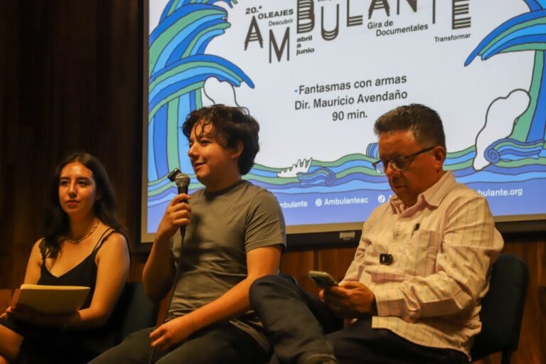 El Centro Universitario de Periodismo de Investigación (CUPI) de la Facultad de Ciencias Políticas y Sociales (FCPS) de la Universidad Autónoma de Querétaro (UAQ) presentó —como parte de la 20° edición del Festival “Ambulante” — el documental “Fantasmas con armas”, del director Mauricio Avendaño.
