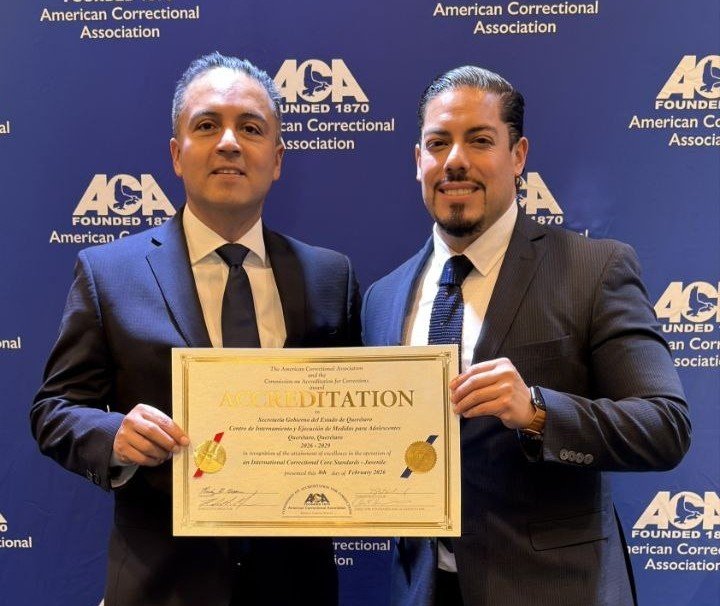 Por cuarta ocasión, la Secretaría de Gobierno a través del Centro de Internamiento de Ejecución y Medidas para Adolescentes, perteneciente a la Autoridad de Ejecución de Medidas del Sistema Integral de Justicia Penal para Adolescentes del Estado de Querétaro, recibió por parte de la Asociación Americana de Correccionales (ACA), la certificación internacional para el periodo 2026- 2029.