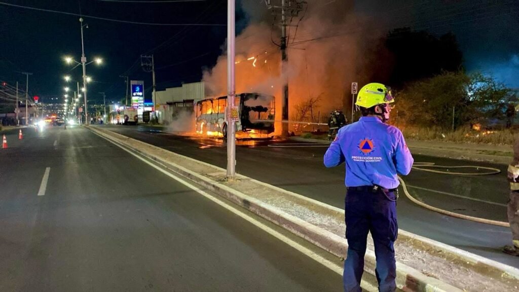Una unidad de transporte terminó totalmente calcinada, luego de registrarse un incendio en el conducto de combustible por una aparente falla mecánica cuando circulaba sobre el bulevar Cerro del Sombrerete en dirección a Bernardo Quintana, a la altura de la colonia Vistas de San Pablo, en la ciudad de Querétaro.