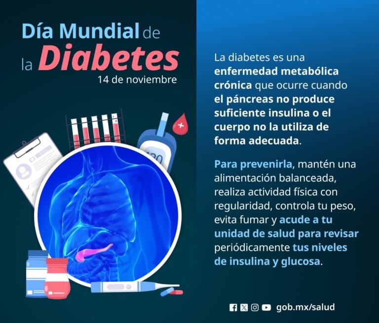 Para este año, el tema “Diabetes en las diferentes etapas de la vida” busca reforzar el compromiso de reducir el riesgo de desarrollar la enfermedad y asegurar que quienes ya cuentan con diagnóstico reciban atención de calidad.