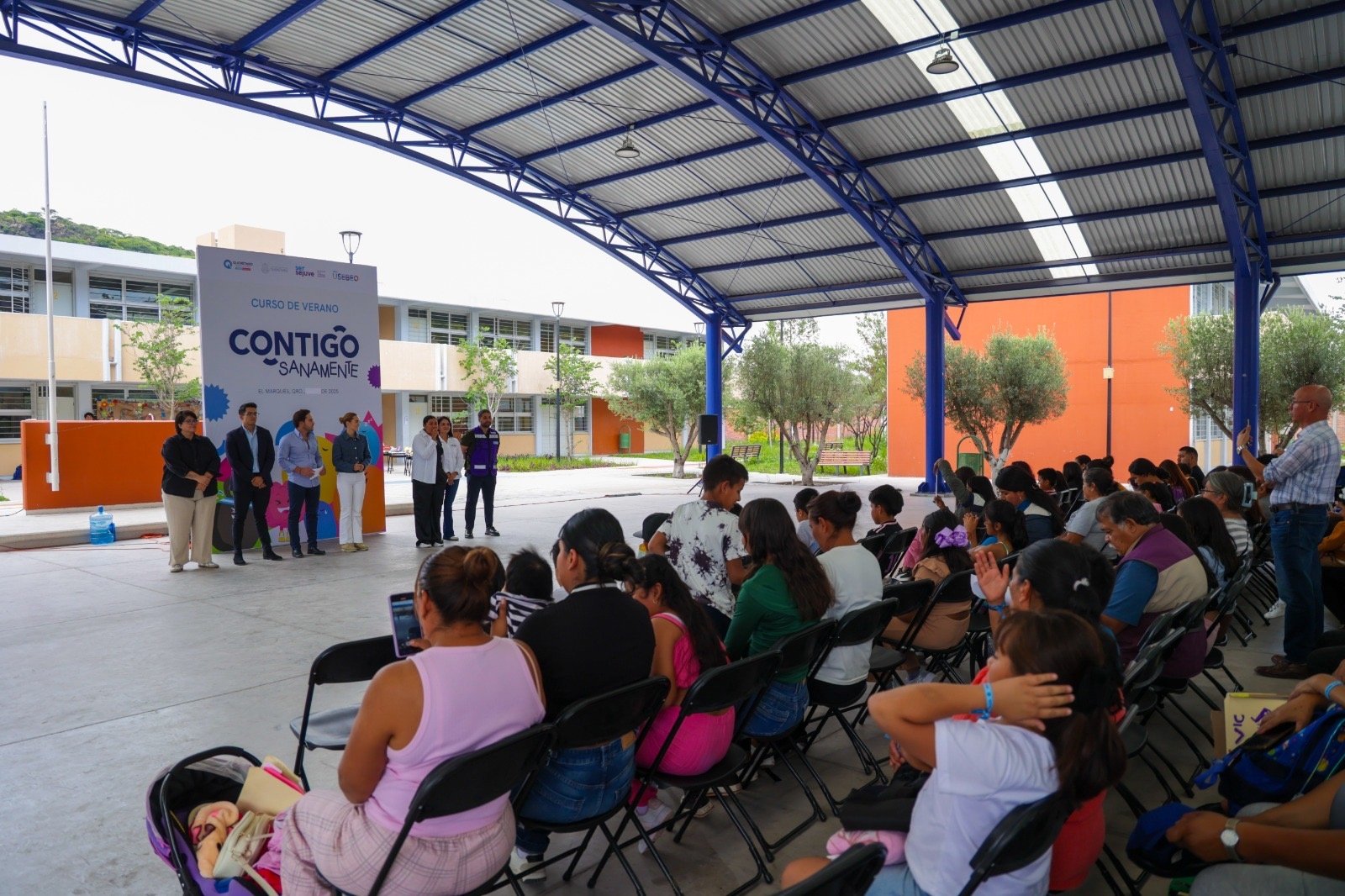 La secretaria de la Juventud (SEJUVE), Virginia Hernández Vázquez encabezó la clausura del curso de verano “Contigo Sanamente”, el cual se llevó a cabo en la escuela primaria “15 de mayo”, ubicada en el municipio de El Marqués; a través de este programa diseñador por la SEJUVE y la Unidad de Servicios para la Educación Básica en el Estado de Querétaro (USEBEQ) 120 niñas y niños durante realizaron actividades enfocadas en fortalecer su bienestar emocional a través del juego, el arte, el movimiento y la convivencia.